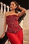 Featuring a red draped skirt crafted in satin fabric, offering both structure and comfort for a bold, modern statement. It is paired with a net corset intricately embellished with beads and crystals. Accentuate the set with zircon jewellery and heels for a refined cocktail look with understated sophistication.