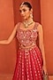 Vermillion Pink Tissue Hand Embroidered Lehenga Set