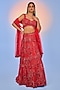 Cherry Red Pure Organza Embroidered Lehenga Set