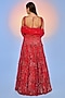 Featuring an exquisite Cherry Red Handcrafted Lehenga crafted in a pure organza base, adorned with embroidery. It is paired with a finely 3D embroidered blouse and an embroidered dupatta. Elevate this designer ensemble with zircon jewellery, a floral hairdo, and embellished block heels for a striking bridal look, perfect for destination weddings, engagements, or sangeet ceremonies.