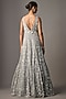 Featuring a dusty grey gown in pure organza base with aari hand embroidery. Accentuate it with zircon jewellery, embellished heels and a clutch bag, perfect for a cocktail or engagement ceremony.