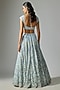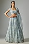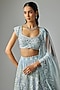 Featuring a dusty ice blue lehenga in pure organza base with embroidery. It is paired with an embroidered blouse and a dupatta. Accentuate it with statement jewellery and heels for a wedding, sangeet or engagement ceremony.