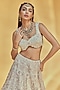 Featuring an exquisite Light Peachy Pink Handcrafted Lehenga crafted in a pure organza base, adorned with embroidery. It is paired with a finely embroidered blouse and an organza embroidered dupatta. Elevate this designer ensemble with zircon jewellery, a floral hairdo, and embellished block heels for a striking bridal look, perfect for destination weddings, engagements, or sangeet ceremonies.