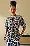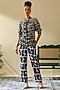 Featuring an indigo shirt in Irish cotton base with tie-up neckline, smocked cuff quarter sleeves.