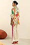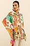 Featuring a multi-colored oversized kimono in mulberry silk base with elasticated waist, tassel detailing and print. It is paired with ivory luxury crepe high-waisted straight pants. Accessorise with dangler earrings and heels.