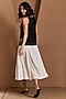 Featuring a black waistcoat in twill crepe and linen base with handcrafted fabric buttons and embroidery. It is paired with a white midi flowy skirt having side zipper and elasticated waistband. Accentuate it with minimal jewellery and heels for a brunch or vacation wear.