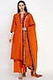Featuring an orange and maroon kurta in chanderi silk base with zardosi embroidery. It is paired with matching polka dotted pants base and a dupatta.
