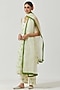 Featuring an ivory kurta in chanderi cotton base with green floral print. It is paired with matching pants and an organza silk polka dot printed dupatta.