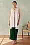 Featuring an ivory jacket in georgette base with sequins embellishments. It is paired with crushed satin pants and a blouse. Accentuate it with block heels and statement earrings for festive ceremonies.