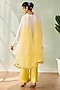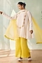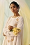 Featuring an ivory A-line kurta in georgette base with sequins embroidery. It is paired with crushed pants and a dupatta. Accentuate it with block heels and statement earrings for festive ceremonies.