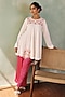 Featuring an ivory A-line kurta in georgette base with sequins embroidery. It is paired with crushed satin pants. Accentuate it with block heels and statement earrings for festive ceremonies.