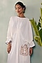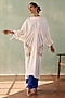 Featuring an ivory kaftan in georgette base with sequins embroidery and pockets. It is paired with crushed satin pants. Accentuate it with block heels and statement earrings for festive ceremonies.