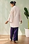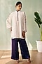 Featuring an ivory short kurta in georgette base with sequins embroidery. It is paired with crushed satin pants. Accentuate it with block heels and statement earrings for festive ceremonies.
