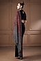 Featuring a black crop top in jersey and moonlight shimmer base with sequins, metallic beads, zardosi and cutdana work. It is paired with a draped skirt. Accentuate it with sculpted silver earrings, a sleek statement cuff, and strappy heels for a stylish ensemble, ideal for destination weddings, sundowner parties, or glamorous resort celebrations.