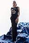 Featuring a black dress in sapphire crepe base with a side slit, 3D sequins floral and cutdana work. Accentuate it with sleek silver drop earrings, a structured metallic clutch and strappy heels for a stylish ensemble, ideal for cocktail receptions, evening galas or upscale dinner parties.