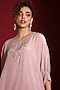 Featuring a lavender kaftan in viscose organza base with embellishment. It is paired with harem pants. Accentuate it with minimal jewellery and heels for a brunch date or sundowner.