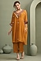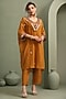 Mustard Organza & Slub Silk Embellished Kaftan Set