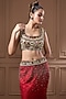 Featuring a red and golden mermaid lehenga in tissue, zari and brocade base with embroidery. It is paired with an embroidered blouse and a dupatta. Accentuate it with statement jewellery and heels for a sangeet or engagement ceremony.