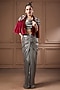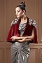 Featuring a wine cape in velvet base with coin, rhinestone, sequins, pipe, swarovski, pearl and cutdana embroidery. It is paired with an imported glass cowl bustier and a draped skirt. Accentuate it with sculpted silver earrings, a sleek statement cuff, and strappy heels for a stylish ensemble, ideal for destination weddings, sundowner parties, or glamorous resort celebrations.
