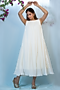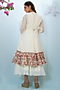Featuring an off-white cape in silk chanderi base with print. It is paired with a matching cotton flared ruffled tunic.