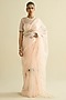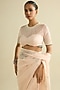 Featuring a pink pre-draped saree in organza base with hand embroidery. It is paired with a blouse. Style this set with soft waves and minimal jewellery, perfect for daytime weddings, cocktail or sangeet ceremonies.