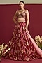 Featuring a red lehenga in georgette base with screen print. It is paired with an organza hand embroidered blouse and an organza dupatta having frill details. Accentuate it with kundan polki jewellery, embellished heels and a potli bag for a complete look, perfect wear for a wedding, sangeet or engagement ceremony.