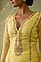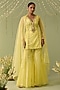 Featuring a yellow kurta in organza base with hand embroidery. It is paired with sharara pants and a dupatta. Accentuate it with kundan polki jewellery, embellished heels and a potli bag for a complete look, perfect wear for a wedding, sangeet or engagement ceremony.