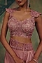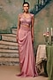 Featuring a dusty rose draped skirt in satin base. It is paired with a net embroidered blouse. Accentuate it with statement jewellery, a structured clutch, and sleek heels for a stylish ensemble, ideal for festive occasions, cocktail or wedding celebrations.
