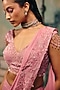 Featuring a dusty rose draped saree in shimmer georgette base with crystal tassels and embellishments. It is paired with a net blouse. Accentuate it with statement jewellery, a structured clutch, and sleek heels for a stylish ensemble, ideal for festive occasions, cocktail or wedding celebrations.