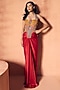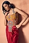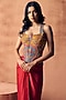 Featuring a yellow corset top in georgette base with floral hand embellishment. It is paired with a fuchsia red satin skirt. Accentuate it with hoop earrings and block heels for boho themed parties or cocktail soirees.