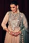 Featuring an ivory anarkali in crush tissue and organza base with mirror work and hand embroidery. It is paired with a soft sage green dupatta having ornate border. Accentuate it with statement jewellery, a structured clutch, and sleek heels for a stylish ensemble, ideal for festive occasions, cocktail or wedding celebrations.