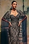 Featuring a navy blue gown in chantilly and pure organza base with embellishments. It is paired with a sheer cape overlay. Accentuate it with statement jewellery, a structured clutch, and sleek heels for a stylish ensemble, ideal for cocktail or wedding celebrations.