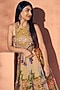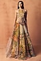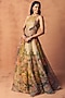 Featuring a pale blue lehenga in organza base with floral print and embroidery. It is paired with a blouse. Accentuate it with hoop earrings and block heels for engagement or sangeet ceremonies.