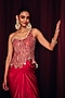Featuring a pink sculpted corset in armani satin and organza base with embellishments and asymmetric neckline. It is paired with a fluid draped skirt. Accentuate it with statement jewellery, a structured clutch, and sleek heels for a stylish ensemble, ideal for festive occasions, cocktail or wedding celebrations.