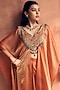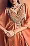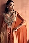 Featuring a rust orange kaftan in metallic tissue georgette base with embroidery and beadwork. It is paired with sharara pants. Accentuate it with hoop earrings and block heels for family gatherings or festive ceremonies.