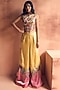 Yellow & Pink Metallic Tissue Georgette Sharara Set