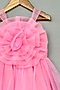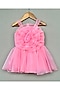 Featuring a baby pink floral flared dress for girls in organza base with shoulder straps detail. Style it with sandals and hair accessories for festive occasion or birthday party.