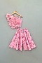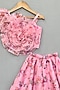 Blush Pink Organza printed Wide-Leg Palazzo Pant Set For Girls