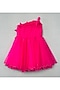Fuchsia Organza Floral Applique Embellished One-Shoulder Dress For Girls