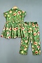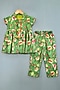 Green Cotton Satin Floral Printed Kurta Set For Girls