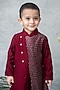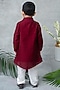 Maroon Dola Silk Hand Block Printed Asymmetric Kurta Set For Boys