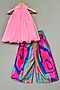 Featuring a pink top for girls in organza and muslin base with embellishment. It is paired with multi-colored printed palazzo pants. Style it with sandals and hair accessories for a wedding ceremony or festive occasion.