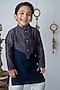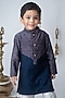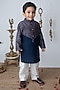 Navy Blue Chanderi Hand Block Printed Kurta Set For Boys
