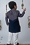 Featuring a navy blue kurta for boys in chanderi base with hand block print and button placket. It is paired with white pants having elasticated waistband. Team it up with mojaris and watch for a festive occasion or sangeet ceremony.