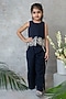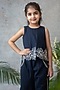Featuring a navy blue sleeveless crop top for girls in cotton base with floral cutwork embroidery. It is paired with wide-leg palazzo pants having piping and side pockets. Style it with sandals and hair accessories for festive occasions.