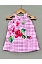 Featuring a pink A-line dress for girls in cotton base with a halter neckline and floral applique embroidery. Style it with sandals and hair accessories for a playdate or vacation wear.