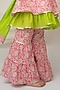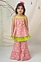 Featuring a pink and green kurta for girls in cotton base with floral print. It is paired with pink tiered sharara pants and a dupatta. Style it with sandals and hair accessories for a festive occasion.