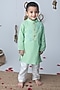 Pista Green Cotton Crush Floral Thread Embroidered Kurta Set For Boys