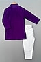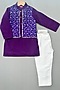 Featuring a purple kurta for boys in dola silk and muslin base with an attached printed bandhani jacket. It is paired with white pants having elasticated waistband. Team it up with mojaris and watch for a festive occasion or sangeet ceremony.