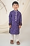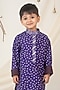 Featuring a purple kurta for boys in muslin base with lace detailing and bandhani print. Style it with pants and a classic pair of shoes for vacation wear or playdate.